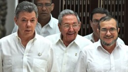 El presidente de Colombia, Juan Manuel Santos, y el jefe máximo de la guerrilla de las FARC, Rodrigo Londoño Echeverri, alias Timochenko, anunciaron hoy un…