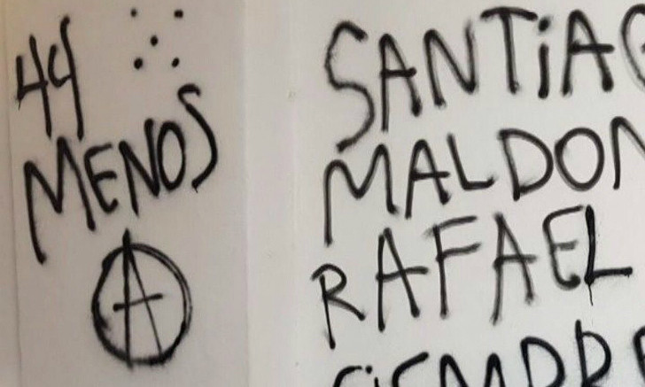 Luego de la marcha hacia el Centro porteño en reclamo por la muerte del joven mapuche Rafael Nahuel durante un enfrentamiento con la Prefectura en las inmediaciones de Villa Mascardi, se produjeron pintadas principalmente en el Cabildo. Las consignas fueron dirigidas contra la ministra de Seguridad Patricia Bullrich y contra los 44 tripulantes del submarino que tiene en vilo a todo el país.