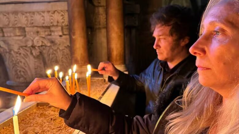 El presidente Javier Milei reza en la Iglesia del Santo Sepulcro