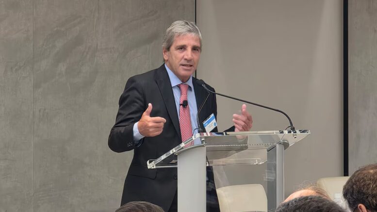 “Esta es la primera vez que alcanzamos la estabilidad macroeconómica basada en la voluntad política“, destacó el titular del Palacio de Hacienda, ante una audiencia de unos 300 empresarios, en uno de los edificios del Bank of America (BofA), en el midtown de Manhattan. Caputo fue presentado por Jim DeMare, co-presidente del banco estadounidense.