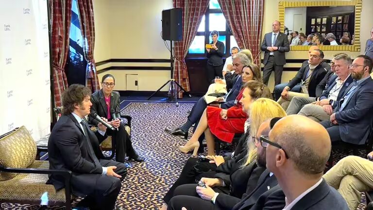 “Es un día bastante interesante para hablar de Argentina porque ayer en la sesión de la Cámara de diputados la casta política, como nosotros llamamos a ese conjunto de delincuentes que quieren una Argentina peor porque no están dispuestos a ceder sus privilegios, empezaron a descuartizar nuestra ley”, inició la charla Milei ante los empresarios.Te puede interesar:Javier Milei lloró en el Muro de los Lamentos y luego se reunió con el presidente Herzog para ratificar su condena a Hamas