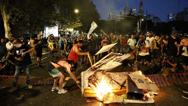 Caída la noche, con la movilización ya consumada, se registraron nuevos incidentes y actos de vandalismo que prolongaron la tensión: militantes quemaron contenedores de basura y bloquearon nuevamente la circulación sobre la avenida de Mayo en el centro porteño. Sobre Entre Ríos, a metros del Congreso, grupos desarticulados, compuestos en su mayoría por jóvenes, extendieron los disturbios y se enfrentaron con la policía que se hizo paso hasta desbloquear la avenida.
