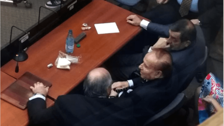 A paso lento, acompañado por sus abogados y de traje oscuro, Menem llegó y se sentó en uno de los lugares reservados a los acusados a la espera del inicio de la audiencia.