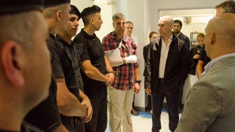 Rodríguez Larreta expresó su repudio a los ataques que sufrieron las fuerzas de seguridad al afirmar que «hubo gente que llevaba bolsas con bulones, estaba premeditado y organizado», y ejemplificó: «Fuimos con Mauricio (Macri) a visitar a un chico que casi pierde un ojo. El médico nos decía que le tiraron con una gomera, de cerca, un tornillo adentro del ojo».