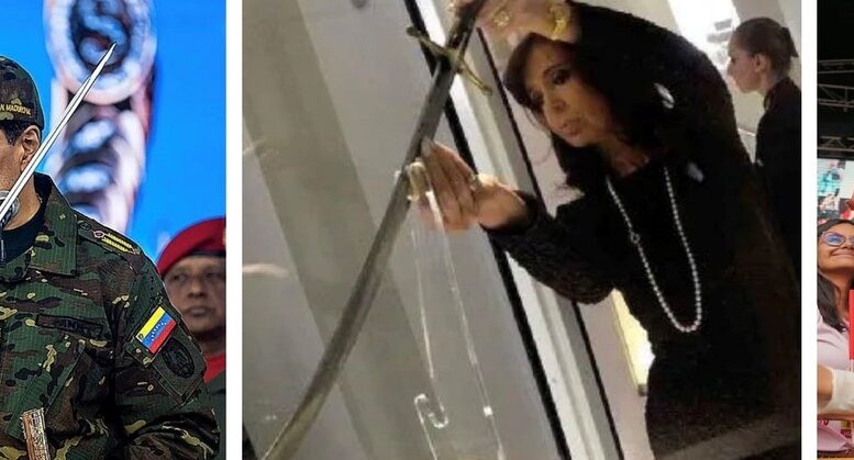 Presidentes, presidentas, dictadores, gobernantes latinoamericanos: a casi todos parece gustarles esgrimir durante sus mandatos las armas que en algún momento, o no, usaron sus predecesores en el campo de batalla. Sables y espadas, simples o adornadas, han sido trasladadas, generalmente sin medidas de protección o robadas de los lugares donde las situó la historia, un testamento o diversas voluntades, y esgrimidas como parte de otras batallas, entre ellas supersticiones personales, sin que literalmente corra sangre, en guerras con victorias pírricas, en las que las historias de sus propietarios originales son acomodadas al gusto.