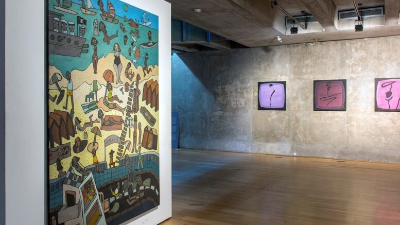 Se destaca acrílico sobre tela En la Playa, una de las primeras obras de Ballesteros, de 1983. Una serie de carros de hierro con ruedas del 2011 llama la atención por cierta inutilidad: son vehículos que giran sobre su eje y no cargan nada.