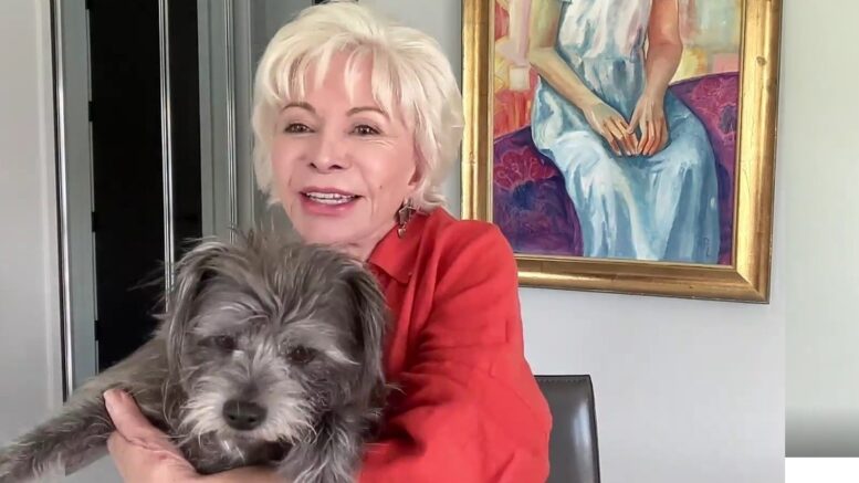 La escritora Isabel Allende y su perra Perla presentan el libro Perla y la pirata, ilustrado por Sandy Rodríguez. Foto: redes sociales.