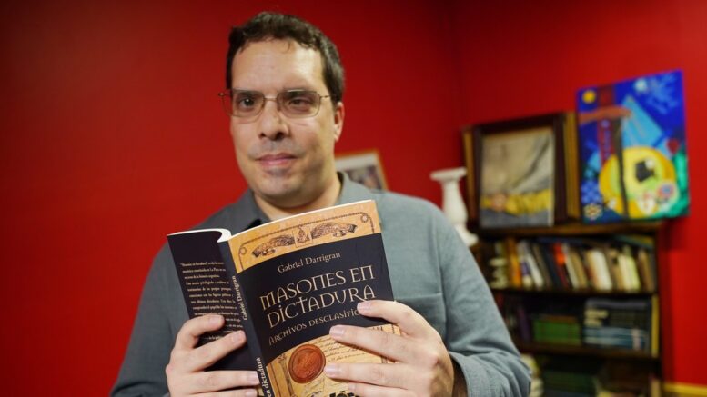 No es una cita al pasar. Funciona, más bien, como una declaración de principios que sobrevuela todo el encuentro. Y también como un punto de tensión. La escena es la presentación de Masones en dictadura, la investigación de Gabriel Darrigran: historiador con formación archivística en la Universidad Nacional de Educación a Distancia de España, investigador en el Archivo de la Guerra Civil en Salamanca y colaborador de la revista académica REHMLAC+ de la Universidad de Costa Rica. Su trabajo se apoya en una base poco frecuente: archivos institucionales desclasificados de la propia masonería argentina.