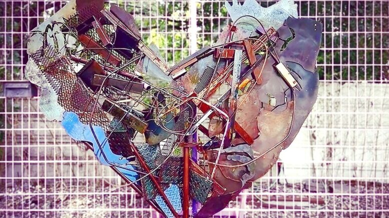 Se trata de un trabajo creado con materiales reciclados, desde chapas hasta maderas, que ya está instalado en el hall principal del ex Palacio de Correos -cuya construcción arrancó en 1908– pero que recién será encendido el 14 de febrero, Día de los Enamorados.