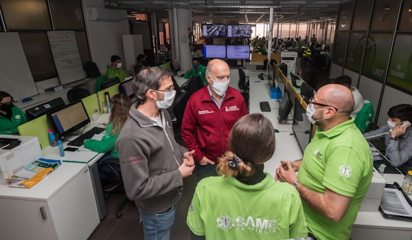 El intendente de Lanús, Néstor Grindetti junto al secretario de Salud local, Gustavo Sieli recorrió el Call Center de Salud, creado para realizar el seguimiento de casos de Covid-19, tanto confirmados, como sospechosos y aquellos que fueron descartados. Con un total de 15.035 casos seguidos desde el comienzo de las tareas, este equipo establece un contacto cercano y de acompañamiento con cada paciente.
