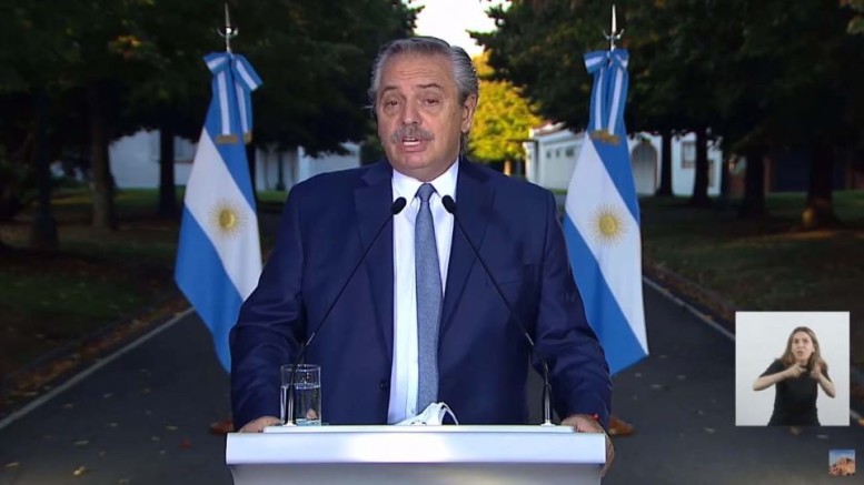 Alberto Fernández afirmó también que los mayores contagios por coronavirus ocurren en el transporte público y los encuentros sociales. «Hay que evitar toda reunión social porque es donde ocurren los contagios; no en las fábricas ni en las escuelas sino en el transporte público y las reuniones sociales», dijo.