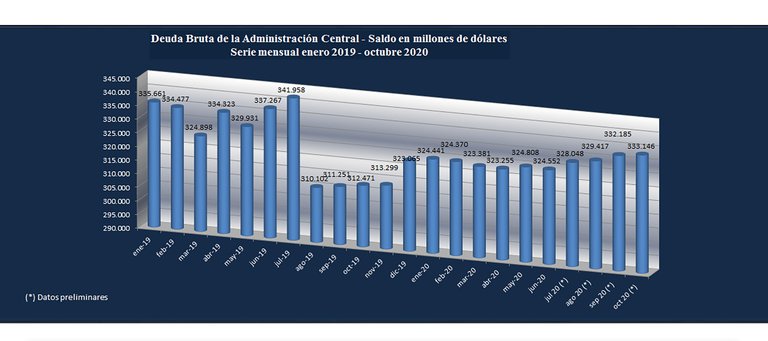 Al 31 de octubre la deuda pública ascendió al equivalente a USD 333.146 millones