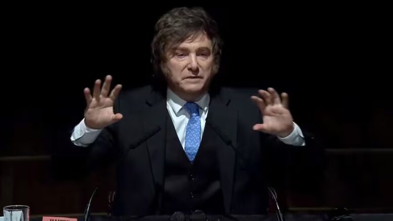 Habló también Milei sobre los “zurditos de mierda” y en el tramo más fuerte de su discurso se envalentonó de vuelta contra la oposición, los empresarios y la prensa.