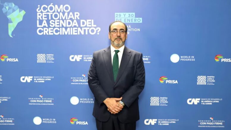 El ex ministro de Comercio, Industria y Turismo de Colombia ofreció un balance de CAF antes de argumentar por qué este primer foro se repetirá cada enero. “Entre 2021 y 2024 hemos tenido un crecimiento de casi 15% en la cartera del banco”, expuso. Para este año, su expectativa es esa misma senda, “por encima del 5%”. En 2024 se aprobaron préstamos por USD 16.000 millones y se desembolsaron USD 13.000 millones. Como parte de la estrategia de expansión, CAF “se consolidó como el emisor latinoamericano no soberano más grande” y espera en 2025 aprobar al menos “USD 7.000 millones para el sector privado”, anunció.Sergio Díaz Granados, CAF, ForoSergio Díaz Granados, CAF, Foro CAF 2025, Panamá
