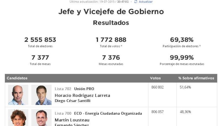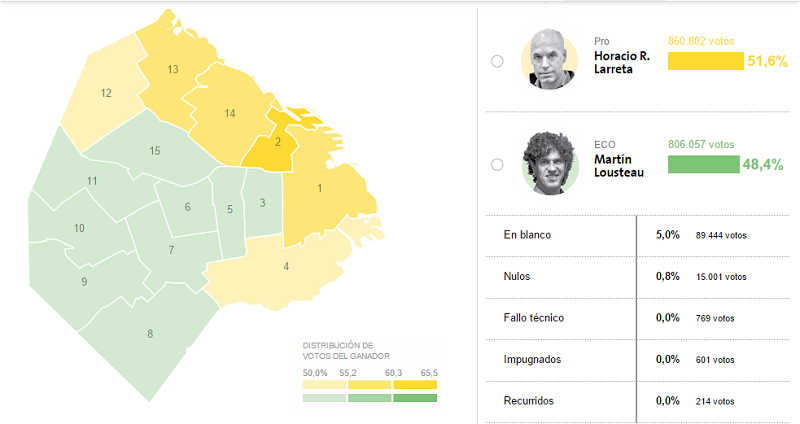 A pesar de haber ganado en más comunas que Larreta, Lousteau no logró obtener mas votos y quedó a tan sólo teres puntos.