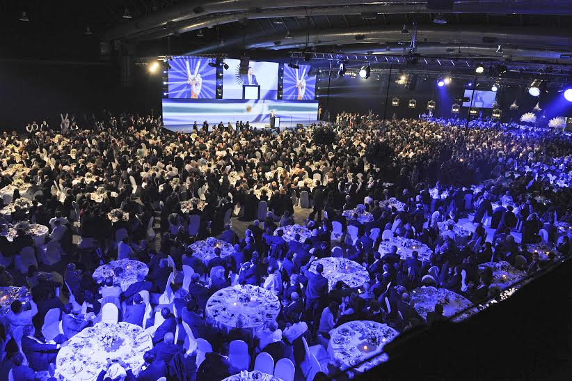 El encuentro de la fórmula Scioli-Zannini, denominado la “Cena del Círculo Celeste y Blanco”, buscó recaudar fondos para la campaña y contó con la presencia de empresarios, representantes de la cultura, rectores de universidades, deportistas, dirigentes gremiales y políticos.