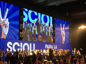 El candidato a presidente por el Frente para la Victoria (FpV), Daniel Scioli, destacó hoy que «Victoria es que el círculo sea el celeste y blanco. Los colores de un gobierno de todos los argentinos para todos los argentinos», durante la denominada Cena del “Círculo Celeste y Blanco”, con la cual se dio inicio formal a la campaña presidencial de la fórmula del FpV, Daniel Scioli-Carlos Zannini, en el predio de Costa Salguero.