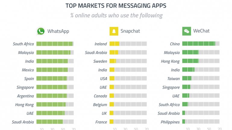 La gente de Forbes decidió utilizar los datos de Global Web Index para hacer una infografía y revelar cuáles son los países que más utilizan el servicio de mensajería.