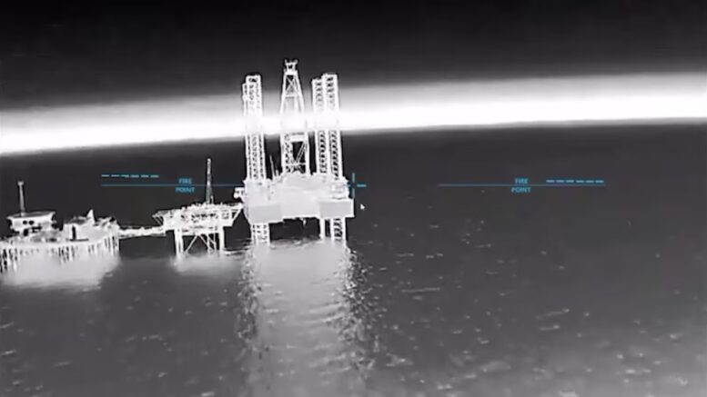 Junto al ataque contra la fragata, las fuerzas ucranianas, en cooperación con el Servicio de Seguridad de Ucrania (SBU) y la Marina, llevaron a cabo una segunda operación esa noche: el impacto de un dron en una plataforma de extracción marítima de gas en el mar Negro. En este caso también se difundió un video similar, grabado desde el dron, que muestra el momento del ataque sobre la infraestructura energética.Te puede interesar:El Ministerio de Defensa de Israel anuncia un plan para acelerar la fabricación de misiles Arrow