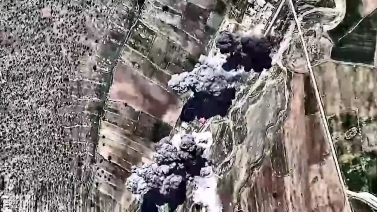 Imágenes aéreas revelan las instalaciones de desarrollo de misiles balísticos en Teherán, Irán, con densas columnas de humo tras un ataque aéreo atribuido a Israel