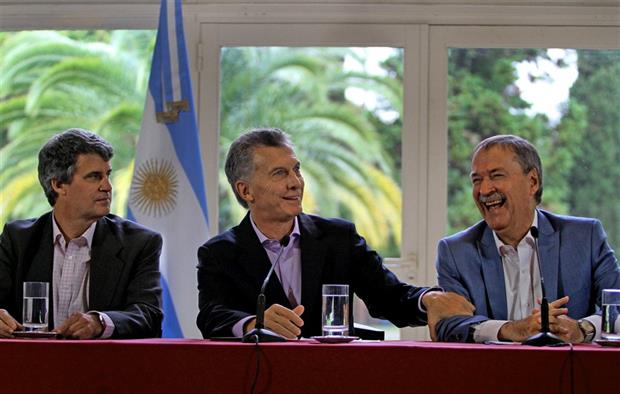 El clima era cordial, de cercanía, entre Mauricio Macri y el gobernador de Córdoba, Juan Schiaretti, en el lluvioso mediodía de la quinta de Olivos. Después de llamar «gringo» y recibir elogios del cordobés, que lo llamó «querido presidente», y firmar convenios, Macri enfocó sus cañones hacia parte del sindicalismo, con el que el Gobierno sostiene una pulseada diaria por reclamos salariales, corporizados en la reapertura de paritarias y el pago de un bono de fin de año.